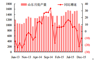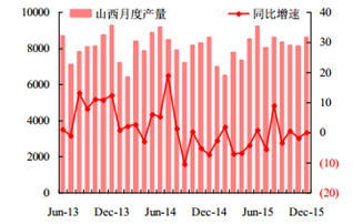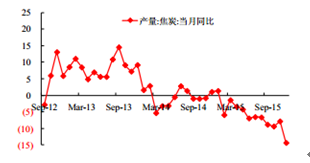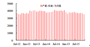 2015年 12 月份我國焦炭產量 3518.00 萬噸,同比下降了 14.3%。
