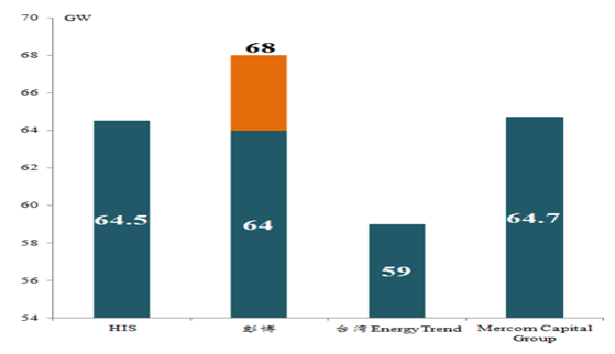各機構預測2016年全球光伏年新增量