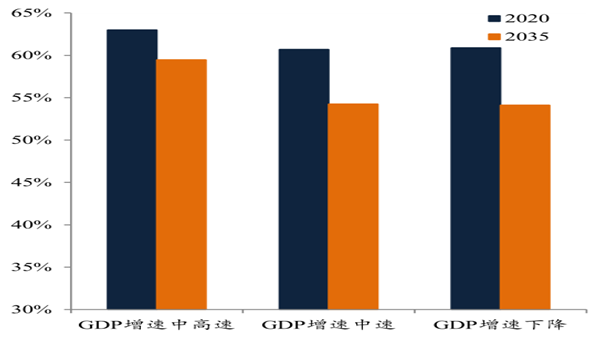 在能源消費結構研究中,考慮到“新常態”經濟增長模式、 二氧化碳減排情景以及產業結構調整等因素的影響下, 到2020年和2035年,中國的煤炭消費占一次能源消費的比重分別下降到60%-64%和50%-55%左右(不同的情景分析下) ,石油占比有所下降,天然氣占比較為穩定。我們認為,到2035年,相比較于目前煤炭消費占一次能源消費的比重66%左右的情況, 僅考慮煤炭的下降幅度所騰出的能源消費空間就有12%左右, 這一下降空間很大幅度將被新能源特別是光伏所替代。