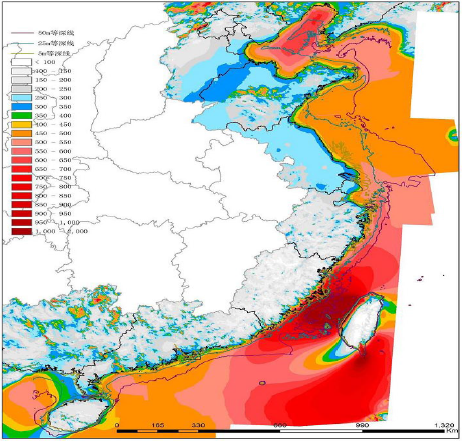 我國的海上風電資源比較豐富,根據中國氣象局詳查的初步成果,在我國5-25m 水深的海域內、50m 高度風電可裝機容量約2 億千瓦,5-50m 水深、70m高度風電可裝機容量約5 億千瓦。