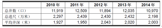 中石油集團2010-2014年鉆井工作量統計