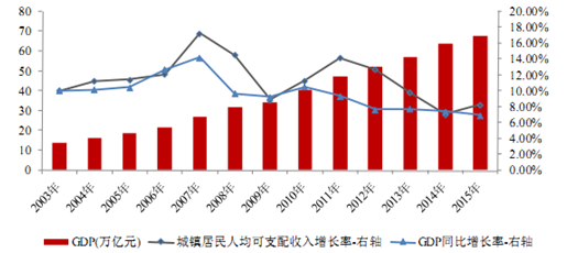 中國城鎮居民人均可支配收入增長率和 GDP 情況