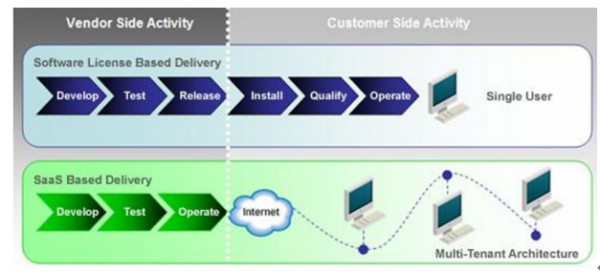傳統(tǒng)軟件模式和SaaS 交付模式