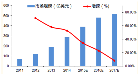 2011-2017年全球大數據市場規模(億美元)