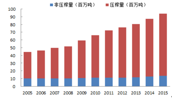 上世紀九十年代以來,我國經濟快速發展,國內油脂需求也呈現爆發式增長。由于我國大豆種植成本高、出油率也僅為 15%左右,國產大豆根本無法滿足國內實際油脂消費需求,我國不得以只能放開大豆進口,并未執行進口配額限制。進口轉基因大豆不僅出油率高達19%,而且價格也明顯低于國內大豆,因此大豆榨油市場已基本被進口大豆壟斷。依據當前我國的轉基因政策,進口轉基因大豆只能夠用在壓榨上,不能用在食用領域,因此國產大豆被迫轉向食用領域。