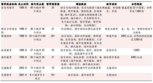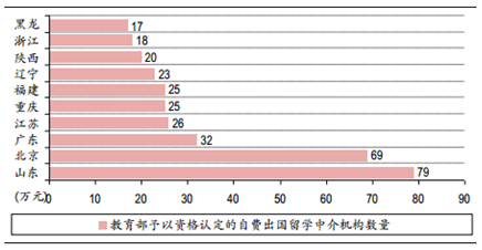 留學服務行業集中度較低,擴展金融、游學等增值服務。目前,教育部予以資格認定的自費出國留學中介機構(除已注銷、已過期)共 489 家,其中山東。79 家)、北京市(69 家)、廣東。32 家)、江蘇省(26 家)、重慶市(25 家)分布較多,總體而言,留學服務行業集中度較低,寡頭尚未形成。