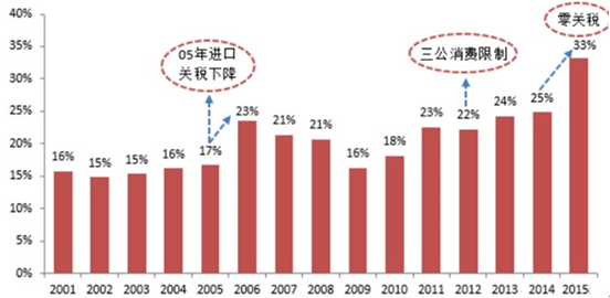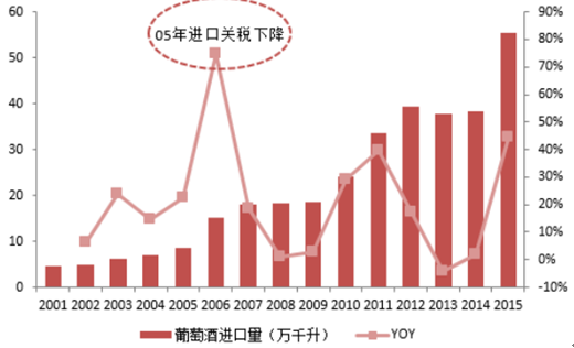 2015年進口葡萄酒市場份額提升至 33%