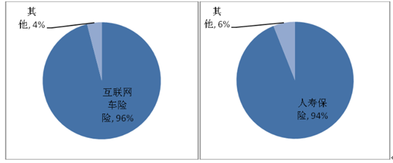 數據同時顯示,財產保險以互聯網車險為主,實現保費 483 億元,占互聯網財產保險總保費的 96%;非車險業務僅占互聯網財產保險保費的 4%,呈現簽單量大、單均保費小且險種多樣化的特點。人身保險互聯網業務的主力險種為人壽保險,2014 年全年實現保費 330億元,占互聯網人身保險總保費的 94%。其中,萬能險互聯網業務全年實現保費 204 億元,占互聯網人身保險總保費的 58%。以短期險為主的意外險是互聯網人身保險第二大險種,盡管 18 億元保費收入僅占互聯網人身保險總保費的 5%,但承保件數占比超過 8 成,共計 8450 萬件。健康險占互聯網人身保險總保費的 1%, 以 1年期及 1年期以內產品為主, 下半年較上半年有20%的增長,發展空間較大。
