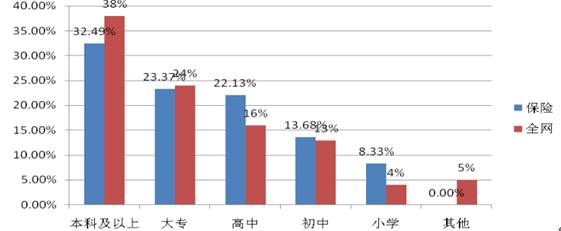 網民對保險行業的關注表現出群體差異性: 不同年齡段網民對保險行業顯示出不同的關注度, 其中關注度最高的 30-50歲網民, 占比為 58%, 高出全行業水平 18%;對保險的關注度也表現出性別分化。 如下圖所示,男性網民關注度明顯高于女性網民。