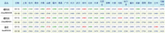全國主要城市中厚板價格匯總
