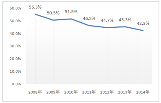 規(guī)模以上企業(yè)平均總資產(chǎn)、銷售收入、利潤總額不斷提升。據(jù)國家統(tǒng)計局公布的數(shù)據(jù),2014年我國規(guī)模以上中藥飲片生產(chǎn)企業(yè)共計878家,平均每家中藥飲片企業(yè)的總資產(chǎn)為1.13億元,銷售收入為1.7億元,利潤總額為1198萬元,同比2008年分別提升114%、216%和276%。中藥飲片企業(yè)資產(chǎn)負債率從2008年的55.3%連續(xù)下降到2014年42.3%,企業(yè)經(jīng)營杠桿不斷降低,平均利潤率維持基本穩(wěn)定,中藥飲片企業(yè)規(guī)模和效益不斷提升。