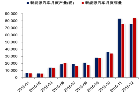 在國家政策的大力扶持下,我國新能源汽車產業進入高速發展期。2015年我國新能源汽車年產銷量超34萬輛,新能源乘用車銷量全球第一。目前中央政策已經涵蓋了新能源汽車的產業規劃、行業管理、財政補貼、稅收優惠、充電設施建設、便民措施等多個方面。
