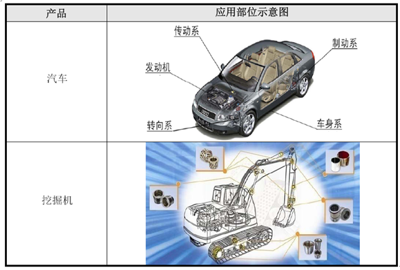 自潤滑軸承適用于無法加油或很難加油的場所。由于特殊生產(chǎn)工藝的要求,汽車制造、機械工業(yè)企業(yè)的某些關鍵設備需要在極端工況下運行,由于設備重、環(huán)境溫度高、粉塵大或空氣中含酸性腐蝕氣體等各種因素,難以為設備添加潤滑油,因此滾動軸承或一般滑動軸承摩擦磨損嚴重,易發(fā)生軸承的咬傷或咬死,引起零件磨損和損壞,導致設備停運。為了生產(chǎn)連續(xù)運行,除在原始設計上要求安裝多臺設備輪修外,還須投入大量維修人員,備品備件和能源消耗極大。因此汽車制造、工程機械、模具行業(yè)等企業(yè)在復雜工況條件下都具有對特種潤滑材料的需求。無油化可以使軸承設計、結(jié)構(gòu)等大幅簡化,降低成本,節(jié)省設計時間,可在使用軸承時不保養(yǎng)或少保養(yǎng),也免除了由于供油不足造成的風險。發(fā)行人通過對自潤滑軸承復合材料及自潤滑軸承的研究,在材料配方和制備工藝上實現(xiàn)創(chuàng)新突破,可以為客戶解決特殊工況下的潤滑問題。