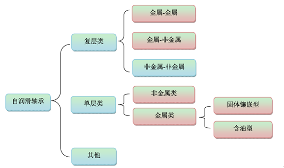 隨著自潤滑軸承行業(yè)的發(fā)展,自潤滑軸承的生產(chǎn)工藝和材料不斷創(chuàng)新,產(chǎn)品的種類也逐漸豐富。根據(jù)產(chǎn)品結(jié)構(gòu)和制造材料的不同,自潤滑軸承劃分為復層類、單層類、其他三個大類,其下分為多個子類。具體如下所示: