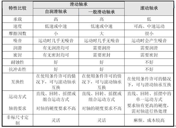 自潤滑軸承和一般軸承之間的性能比較如下: