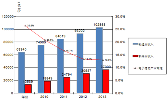 2010-2014年我國電子信息產業增長情況