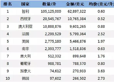 排名地區數量(升)金額(美元)1廣東省1026373878104465212上海市1197135924848548723北京市268626441148894644浙江省30224981834497585福建省35951134882022476山東省23407544748152507江蘇省19754152615815778天津市17218347594109529遼寧省44118892604742910四川省25112131017251810 大進口散裝葡萄酒消費地區