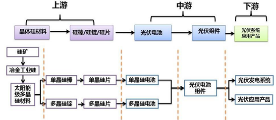 從光伏產業鏈來看,整個光伏產業鏈可以分為上游的晶體硅、硅片;中游的電池片、組件;下游的光伏電站。相對而言,整個光伏產業鏈條中最有技術含量的是在最上游的晶體硅制造以及中游的電池片制造。 對于光伏電池片來說, 最核心的指標是其轉化效率以及單位成本,而這又是單晶/多晶路線和薄膜電池路線之爭的關鍵所在。