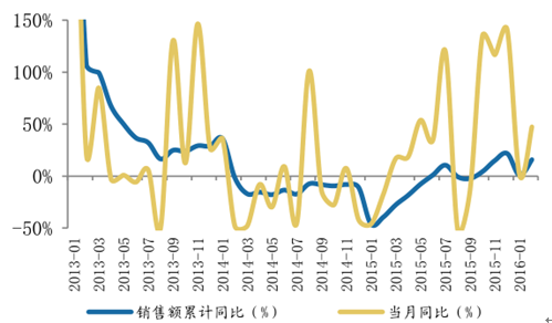 地產(chǎn)業(yè)務(wù)方面,受近期國(guó)家地產(chǎn)政策影響,年初地產(chǎn)銷售額開(kāi)始快速上升,2016 年 1-2 月地產(chǎn)銷售額同比增長(zhǎng) 15.9%,達(dá)到歷史同期較高水平。