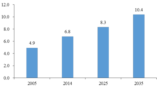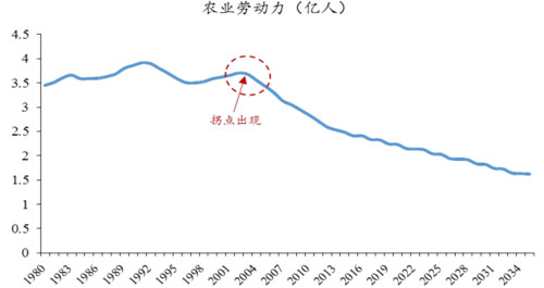 1980 -2035年農(nóng)業(yè)勞動(dòng)力人口預(yù)測(cè)(單位:億人)