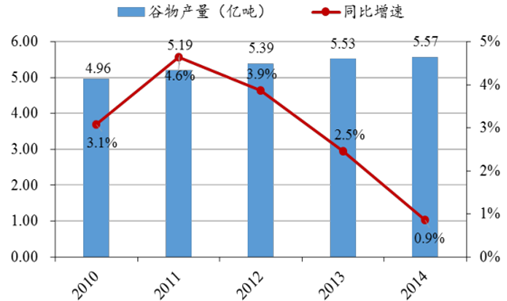 2010-2014年谷物產(chǎn)量情況(單位:億噸)