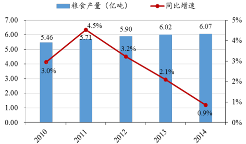 2010-2014年糧食產(chǎn)量情況(單位:億噸)