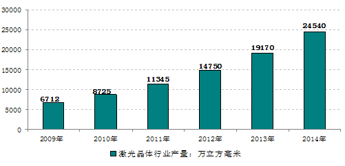 2014年我國激光晶體行業產量約24540萬立方毫米