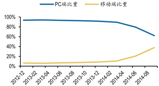 互聯(lián)網(wǎng)彩票銷售額 PC 端、移動端比重