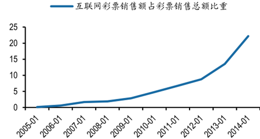 互聯(lián)網(wǎng)彩票銷售額占彩票銷售總額比重