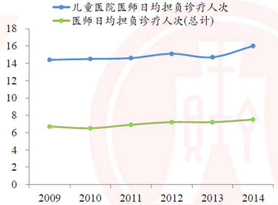2014年兒童醫院病床使用率達到103.8%,較大幅度超過整體床位使用率88%;兒童醫院醫師日均擔負診療人次約16人次,遠超醫療機整體7.5人次的平均水平,兒童醫院醫師工作強度大,超負荷運行。我國兒童醫療服務供給端缺口巨大。