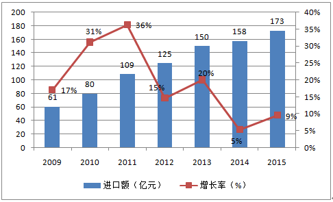 2009-2015 年中國(guó)醫(yī)療器械進(jìn)口額