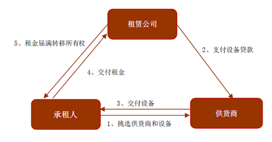 融資租賃:融資租賃是指出租人根據(jù)承租人對(duì)租賃物的選擇,向供貨人購(gòu)買(mǎi)租賃物后向承租人租賃,承租人支付租金。租賃期限結(jié)束后,承租人以象征性的價(jià)格購(gòu)買(mǎi)租賃物件,租賃物件的所有權(quán)由出租人轉(zhuǎn)移到承租人。最基礎(chǔ)的直接融資租賃包含三方(出租人、承租人、出賣(mài)人)和兩個(gè)合同(購(gòu)銷(xiāo)合同、租賃合同)。