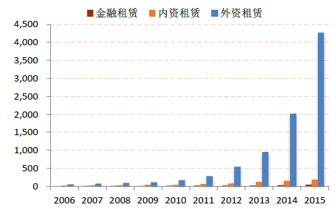 2006-2015年中國(guó)不同類(lèi)型融資租賃公司數(shù)量