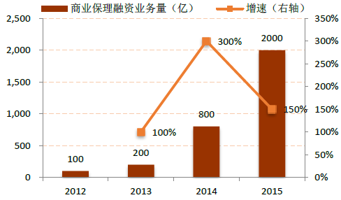2012-2015年中國(guó)商業(yè)保理融資業(yè)務(wù)量和增速
