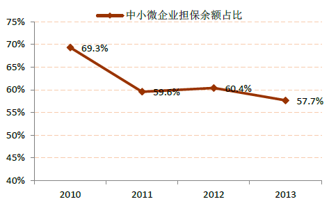 2010-2013年中國(guó)中小企業(yè)融資性擔(dān)保余額占比
