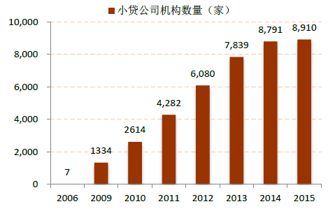 2006-2015年中國(guó)小額貸款公司機(jī)構(gòu)數(shù)量