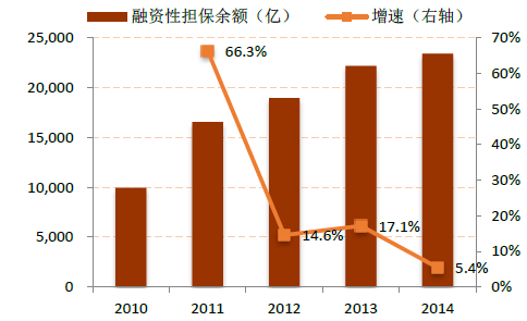 2010-2014年中國(guó)融資性擔(dān)保余額及增速
