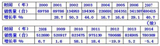 2000—2014年我國工程機械行業(yè)主要企業(yè)銷售量