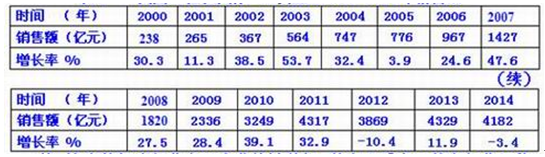 2000—2014年我國工程機械行業(yè)主要企業(yè)銷售收入