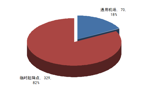 中國現有399個通用機場與臨時起降點(其中通用機場70個、臨時起降點329個)。但和美國19000個的數量相比,差距十分明顯。