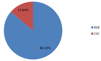 2、2015年下半年,中國二手車電商行業(yè)To C模式平臺成交量達(dá)到32.0萬輛,總成交規(guī)模約為307.2億元。其中B2C模式成交量為27.6萬輛,占總成交量86.2%;C2C模式成交量為4.4萬輛,占整體13.8%。
