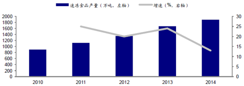 2010-2014年我國速凍食品產量(萬噸)