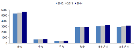 2012-2014年我國易腐食品產量(萬噸)