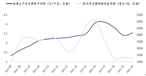 2009-2015年我國奶價漲跌與新西蘭奶粉價格波動高度相關