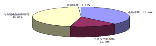 新能源汽車在傳統汽車產業鏈基礎上進行延伸,增加了電池、電機、 電控系統等組件。電池是新能源汽車產業鏈中最關鍵的環節之一,尤其 在純電動汽車中,電池的性能決定了整車的行駛速度、續駛里程以及整 車的安全性和可靠性。而且在新能源汽車新增組件中,電池系統的占比最高,占新增成本的絕大部分。美國能源部下屬的阿貢國家實驗室 (Argonne National Laboratory)的評估報告顯示,在插電式混合動力 汽車成本構成中,電池占比 37.8%左右。在純電動車成本構成中,電池成 本高達 60%。以一輛 15 萬元的比亞迪 F3DM 為例,電池成本在 5.7 萬左右。