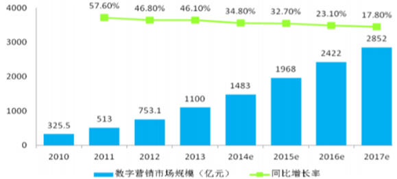2010-2017年中國數字營銷市場規模及預測
