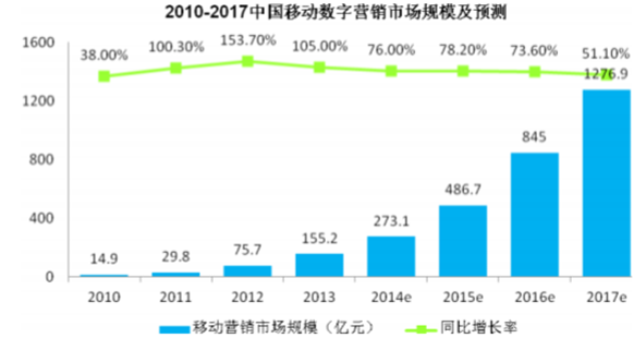 2010-2017年中國移動數字營銷市場規模及預測