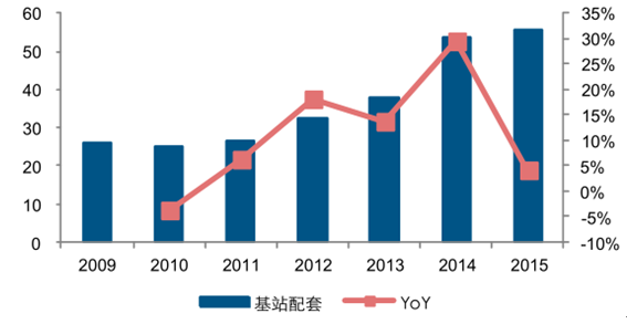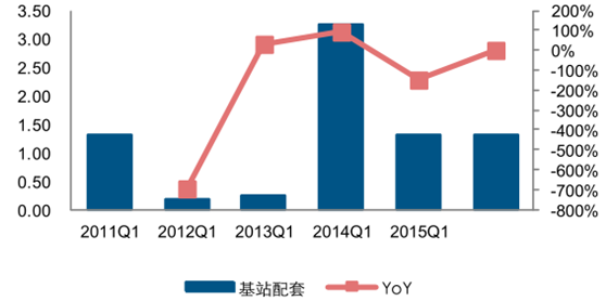 2009-2015年基站配套設備凈利潤(億元)