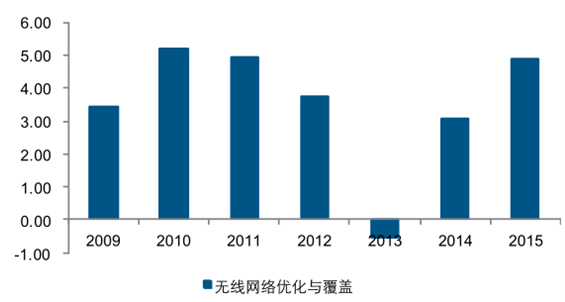 2009-2015 年無線網絡優化與覆蓋廠商凈利潤(億元)