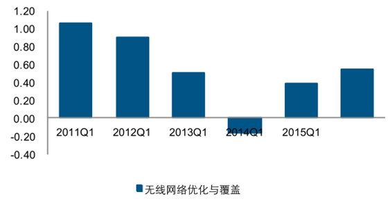 2011-2016年第一季度無線網絡優化與覆蓋凈利潤(億元)